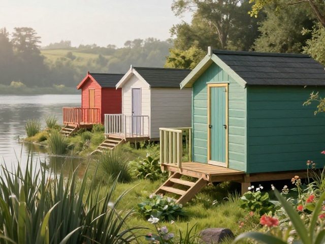 Eco fishing pods, shepherd's huts, and lakeside lodges. Fully installed with services and decking.
